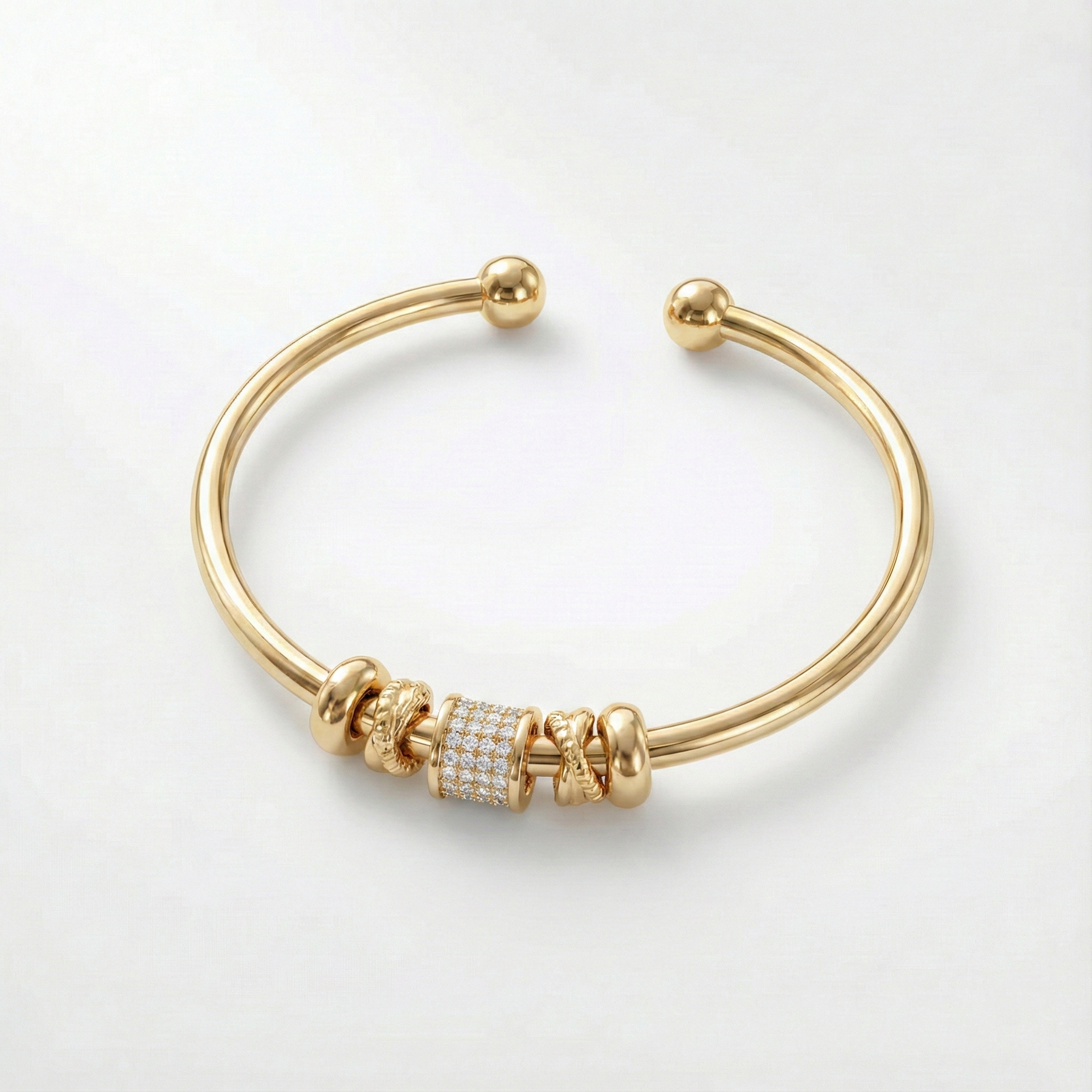 Design: Adjustable open bracelet with multiple charms
