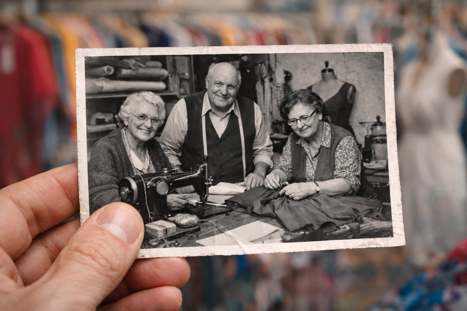 Our grandmother was a seamstress with a natural eye for craftsmanship, and our grandfather started as a factory worker who gradually learned the world of trade by watching and learning from those around him. Together they opened our family’s first small shop, dedicated entirely to women - selling handbags, hats, and seasonal clothing.